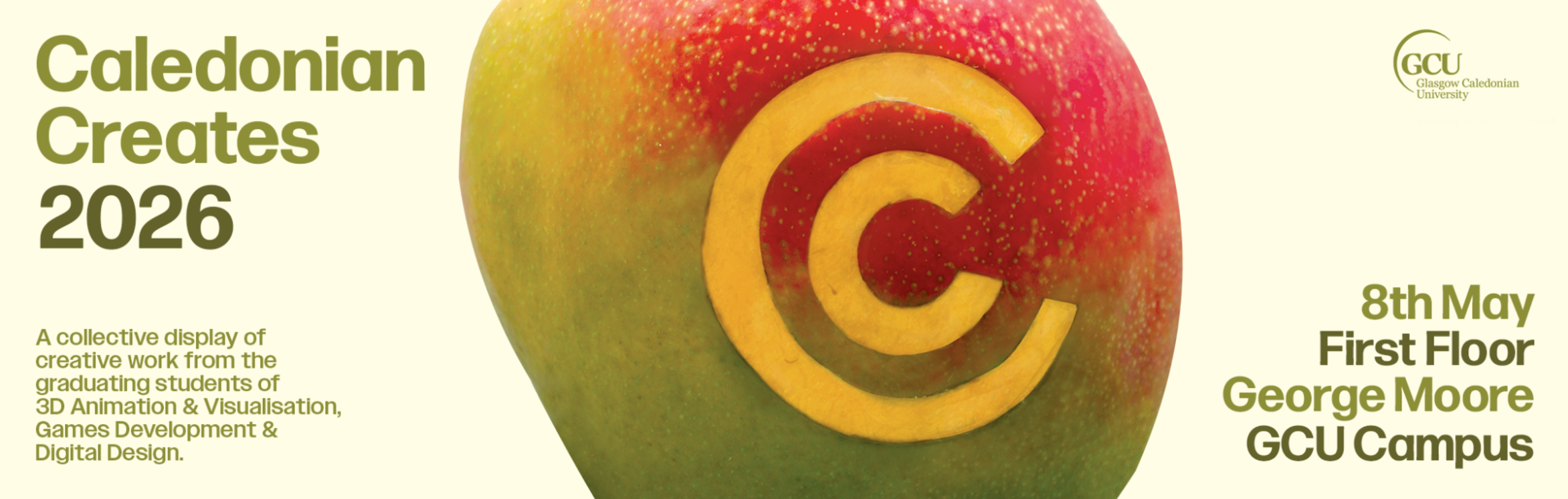Join us at the 2026 Caledonian Creates Exhibition at Glasgow Caledonian University to view the creative work of the BSc Digital Design, BSc 3D Animation & Visualisation, and BSc Games Development students.
